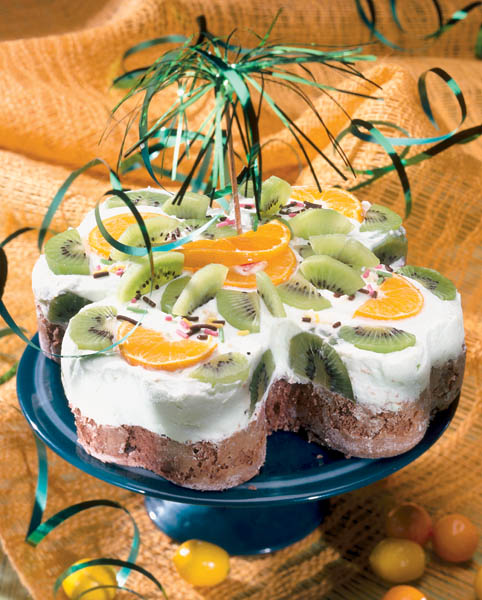 4. Gălbenuşurile se amestecă cu zahărul vanilat şi cu zahărul pudră, iar la sfârşit se pune crema mascarpone şi se bate cu mixerul până se obţine o cremă groasă. Frişca se bate bine cu mixerul şi se amestecă uşor cu crema mascarpone. Se aşază blatul pe un platou, se însiropează şi se ornează cu cremă şi cu fructe după preferinţă.