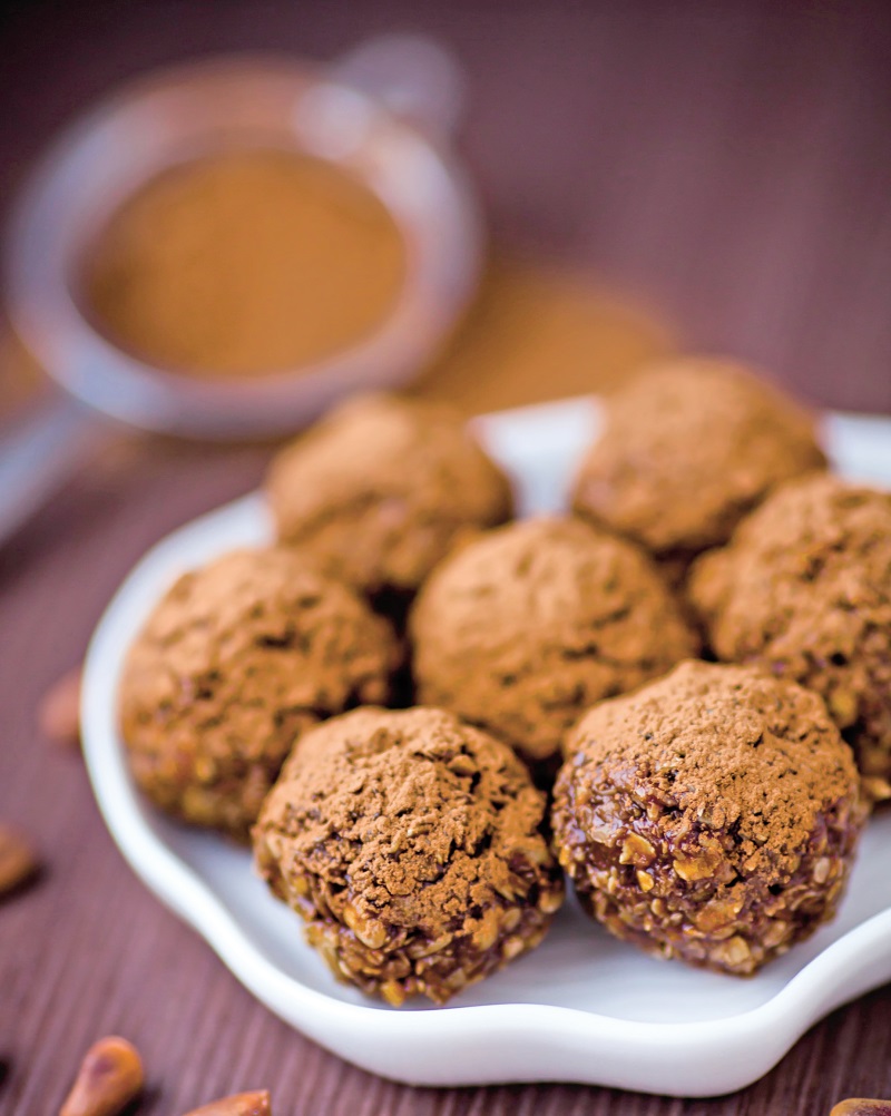 4.    Se amesteca si se da vasul la rece pentru 6 ore. Apoi, se formeaza mici bile care se asaza pe un platou si se presara cu cacao.