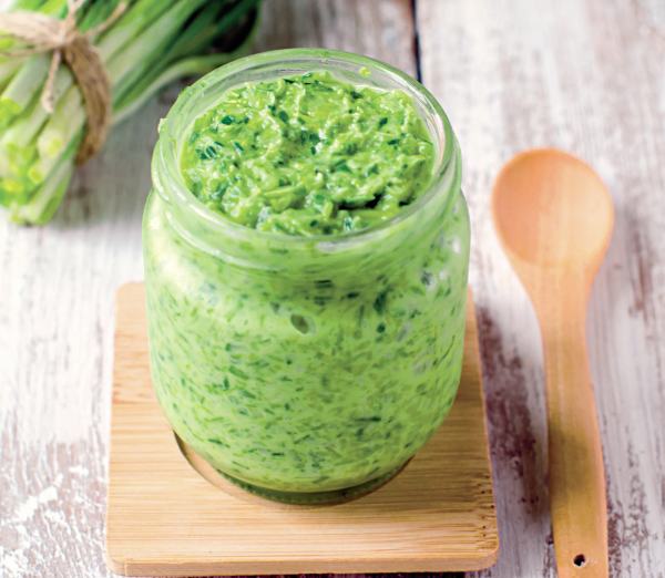 4.    Se pune si patrunjelul si se mixeaza pentru a obţine o pasta fina. Se pune în borcan si se pastreaza la frigider 24 de ore sau la congelator pentru mai mult timp. E bun pe fripturi, dar si pe sandvisuri cu carne sau salam.