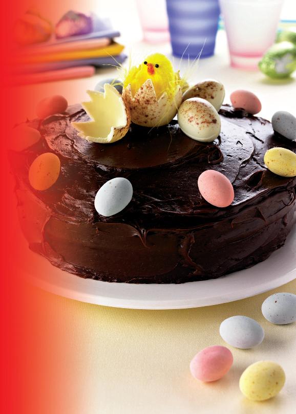 Separat, se freacă zahărul cu gălbenuşurile, cu laptele călduţ, vanilia, un praf de sare, cacaua, făina şi cafeaua şi se pun să fiarbă la baie de aburi. După ce s-a omogenizat, se lasă la rece şi se amestecă cu untul lăsat la temperatura camerei. Se adaugă în crema de ciocolată 2-3 linguriţe de rom natural pentru un gust special. Se scoate blatul, se răceşte, se taie în trei, se însiropează şi se umple cu crema de ciocolată. Se ornează cu ouă din zahăr şi ornamente de ciocolată pentru Paşte.
