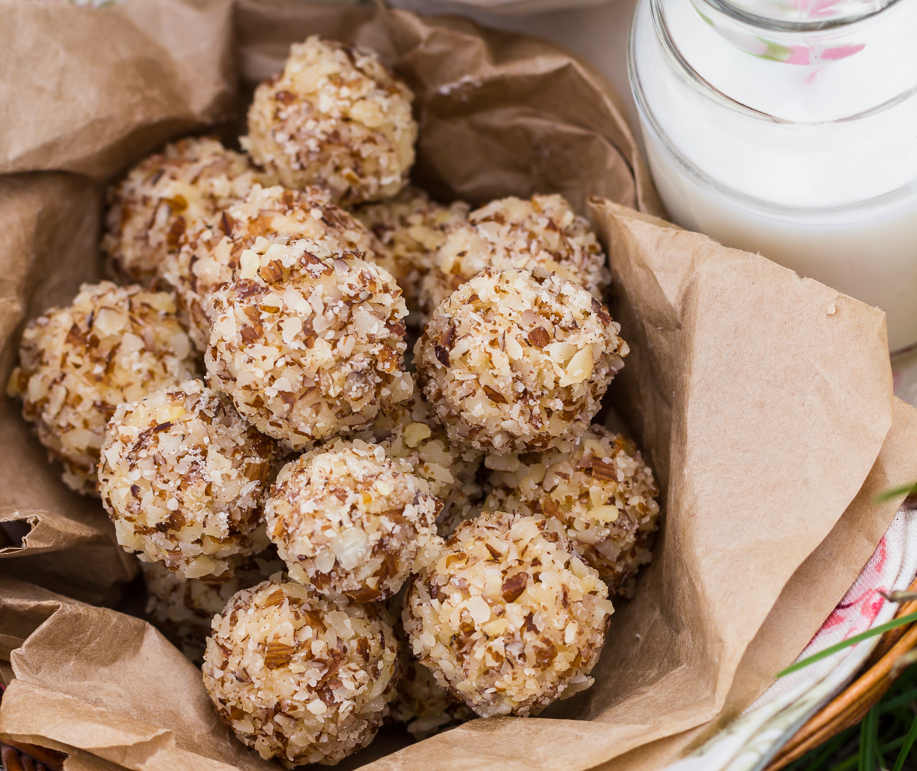 - Coace nucile pentru 7-10 minute la 180 de grade, apoi toaca-le marunt. Tavaleste bilele de branza prin nuca tocata, apoi da-le din nou la frigider. inainte se servire, infige in fiecare aperitiv cate un stix.