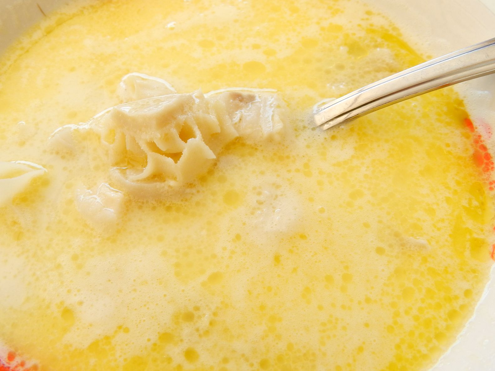 4. Amesteca bine cele 10 galbenusuri cu smantana si adauga-le in ciorba, las-o sa dea in clocot, apoi potriveste gustul de sare.