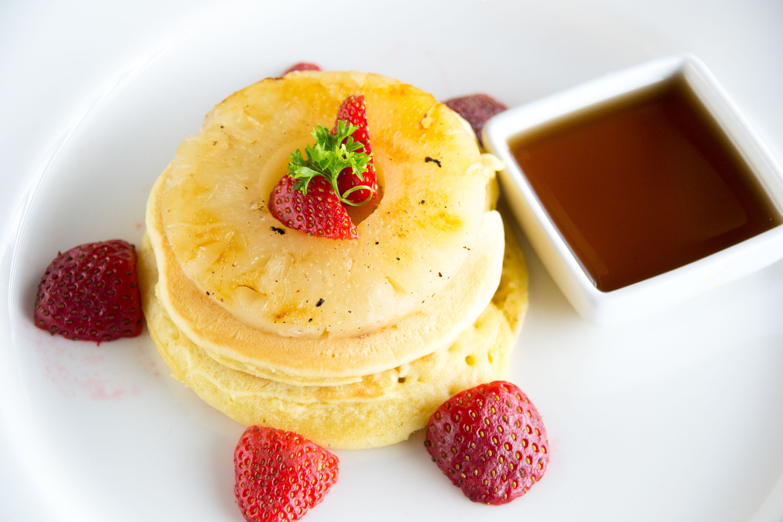 8. Continua sa prajesti restul de clatite in acelasi mod, apoi serveste-le cu siropul de ananas.