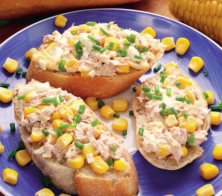 - Se amesteca bine cu furculita si apoi se potriveste cu sare si piper. Se da amestecul la frigider pentru 20 de minute si apoi se fac tartine care se aduc la masa cu boabe de porumb din conserva.