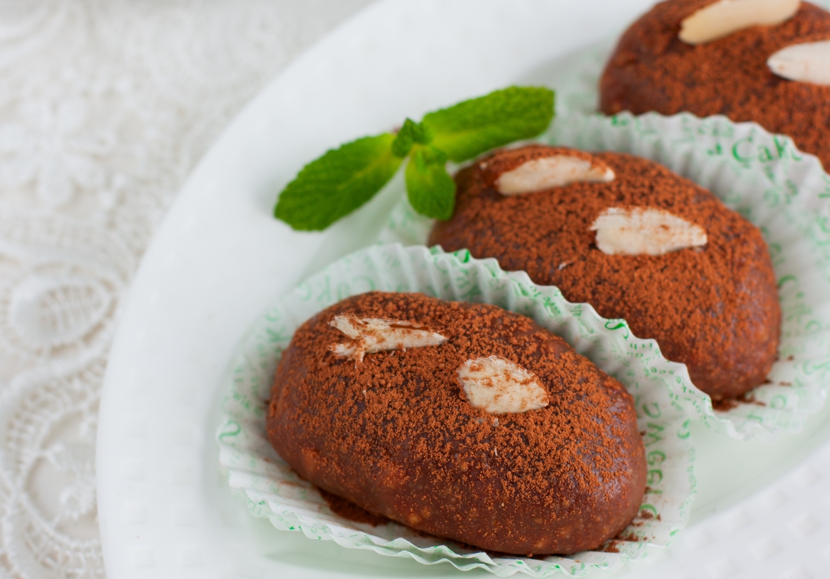 3. Cand compozitia s-a racit suficient cat sa poata fi manevrata, formeaza cartofii de ciocolata cu palmele umezite si tavaleste-i prin cacao sau nuca de cocos.