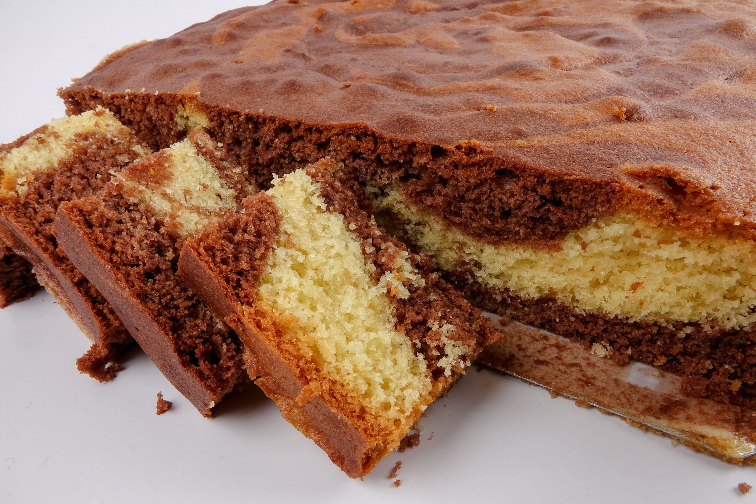 7. Intinde aluatul mai deschis la culoare obtinut tot in tava, cu o spatula, pentru a evita imbinarea culorilor, apoi niveleaza cu grija..