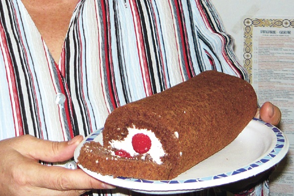 Se scoate blatul pe o hartie de copt si se ruleaza. Se lasa sa se raceasca.