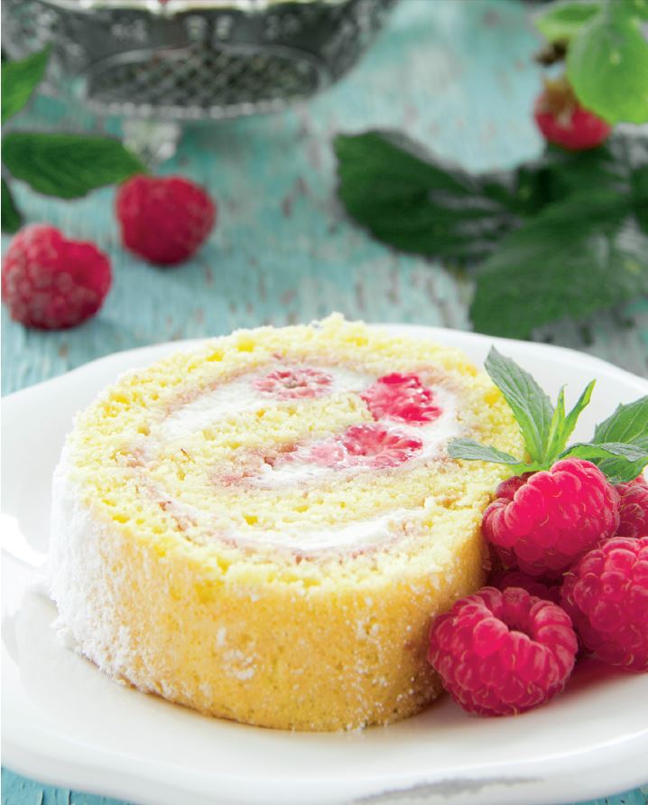 Pentru crema, laptele cu zaharul vanilat se pun pe foc si, intre timp, galbenusurile se amesteca usor cu zaharul si oul intreg. Când se albeste amestecul se pune faina. Se toarna laptele clocotit, se amesteca si se repune pe foc pentru a obtine o crema groasa care se lasa la racit. Se desface aluatul, se umple cu crema si zmeura, se ruleaza din nou si se lasa la rece de pe o zi pe alta. Se serveste presarata cu zahar si fructe proaspete alaturi.