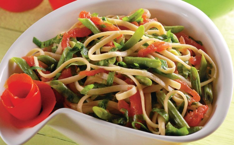 1 cutie spaghete 250 g fasole verde 3-4 rosii 1 borcan mic filé de ansoa