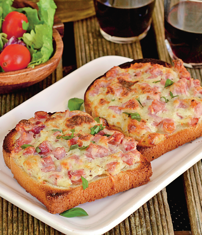 3. Se scot tartinele, se presara cu sunca si se mai lasa la cuptor 5 minute.