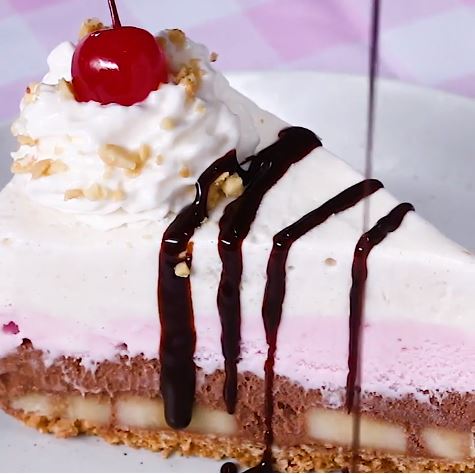 Sigur ați mâncat măcar o dată renumitul desert Banana Split. Încercați această rețetă de tort Banana Split cu înghețată. Te vei îndrăgosti de el. E perfect pentru serile călduroase de vară.