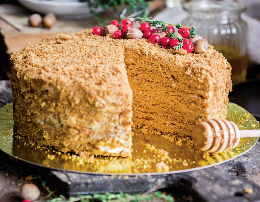 O reteta de desert ca la mama ei acasa, adica in Rusia, unde este extrem de populara, si care imbina dulceata mierii cu savoarea aromei de nuca.