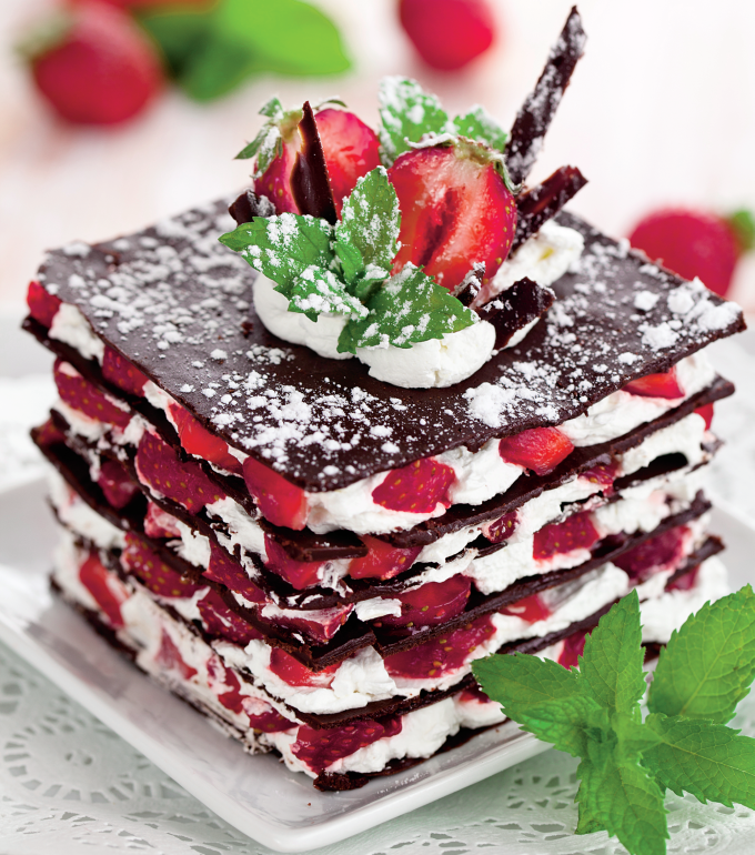 Racoros si delicios, turnul de ciocolata cu frisca si capsuni e desertul perfect pentru zilele toride de vara.