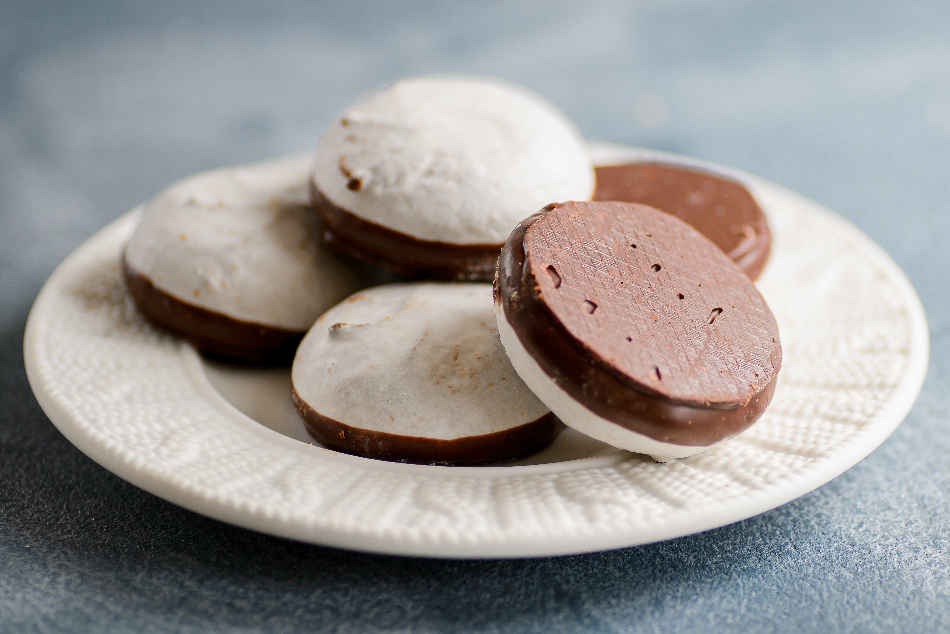 - Incalzeste smantana pentru frisca si toarn-o peste ciocolata tocata cat mai marunt. Lasa ciocolata 2 minute, apoi amesteca energic pana cand obtii o glazura omogena. Trece fiecare turta dulce prin ciocolata, cu partea neglazurata in jos. Lasa turtele sa se intareasca, cu glazura alba in jos.